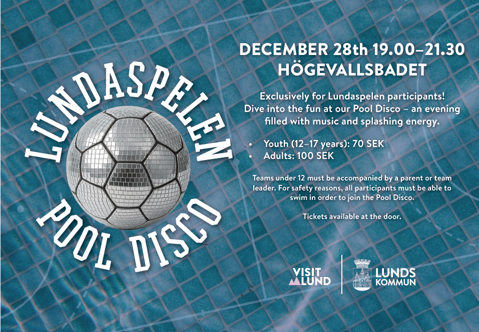 DECEMBER 28th 19.00–21.30 HÖGEVALLSBADET Exclusively for Lundaspelen participants! Dive into the fun at our Pool Disco – an evening filled with music and splashing energy. • Youth (12–17 years): 70…
